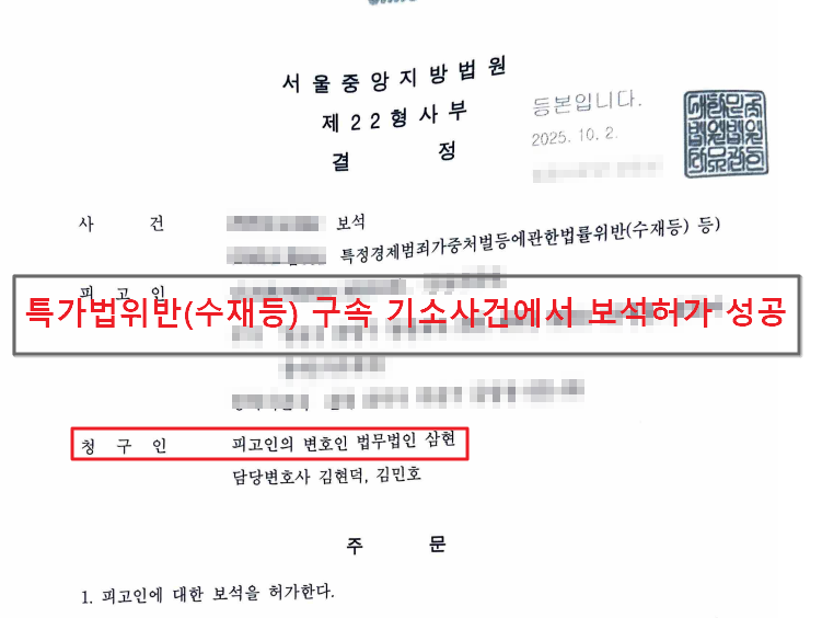 - 이러한 김현덕 형사팀의 치밀한 변론 덕분에 서울중앙지방법원은 피고인의 보석을 허가한다는 결정을 해주었습니다.